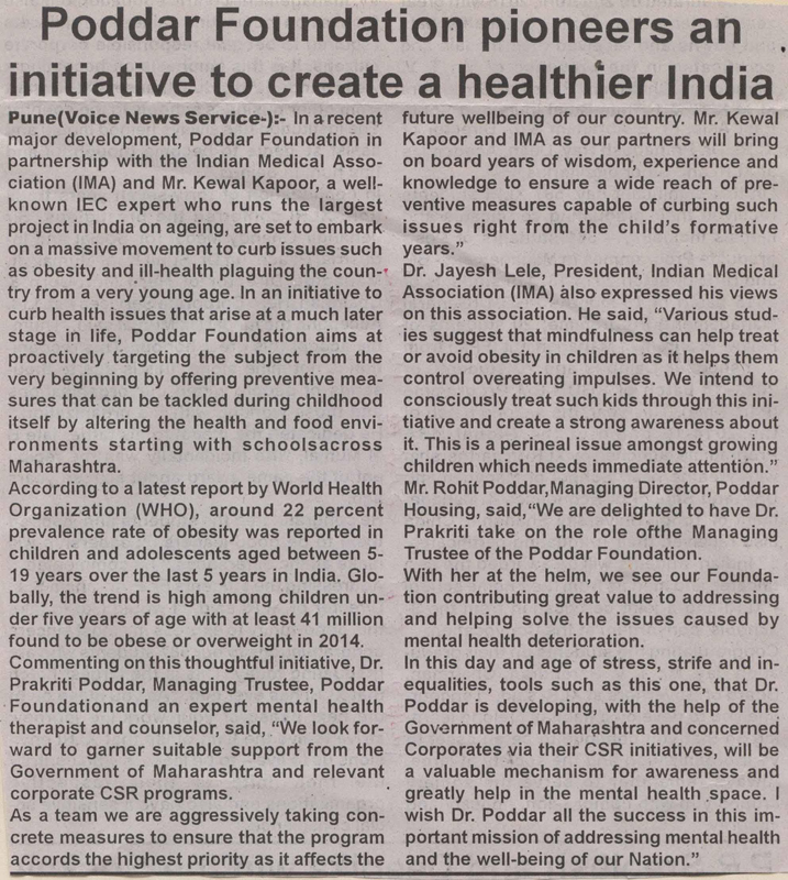 Poddar Foundation pioneers an initiative to create a healthier India